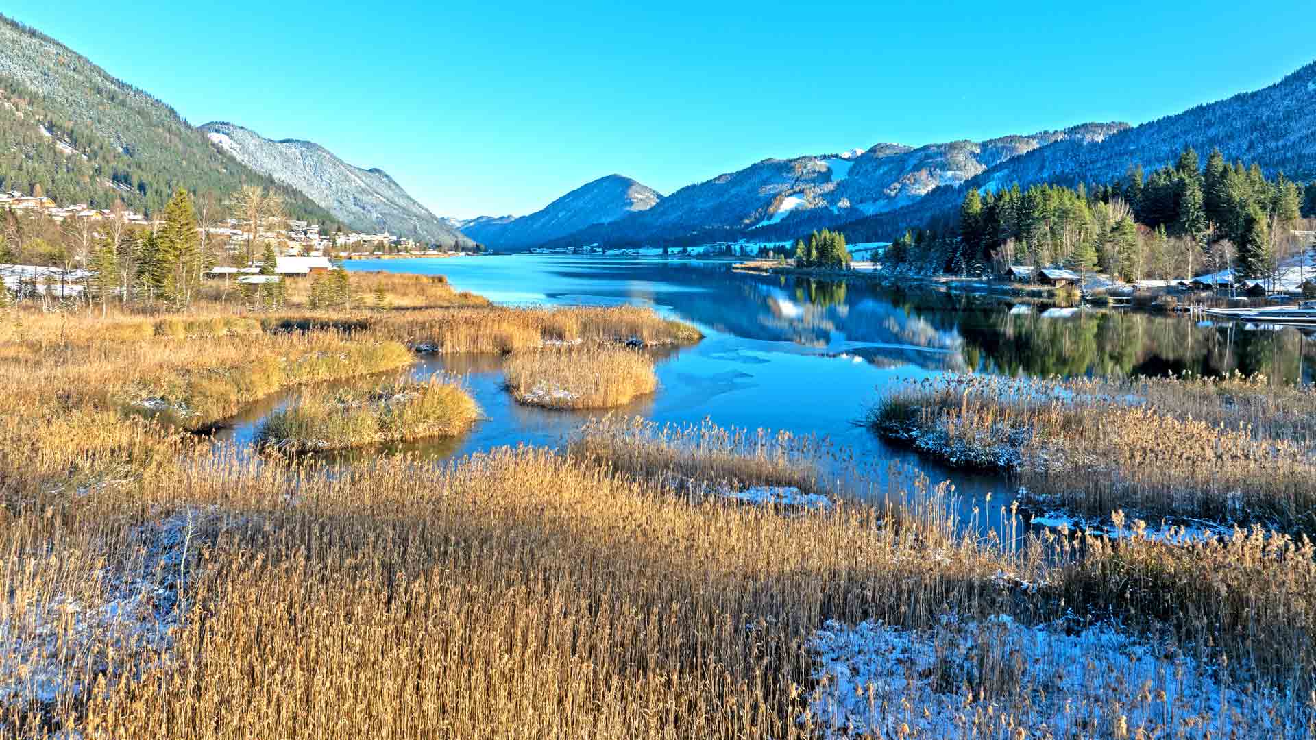 Am Wochenende wurde es jetzt kalt am See, in der Nacht zum Sonntag sank das Thermometer bis auf 2-stellige Temperaturen und führte bereits 2 Tage vor Kathrein (25.Nov) zum ersten, noch dünnen, Eis auf dem See.