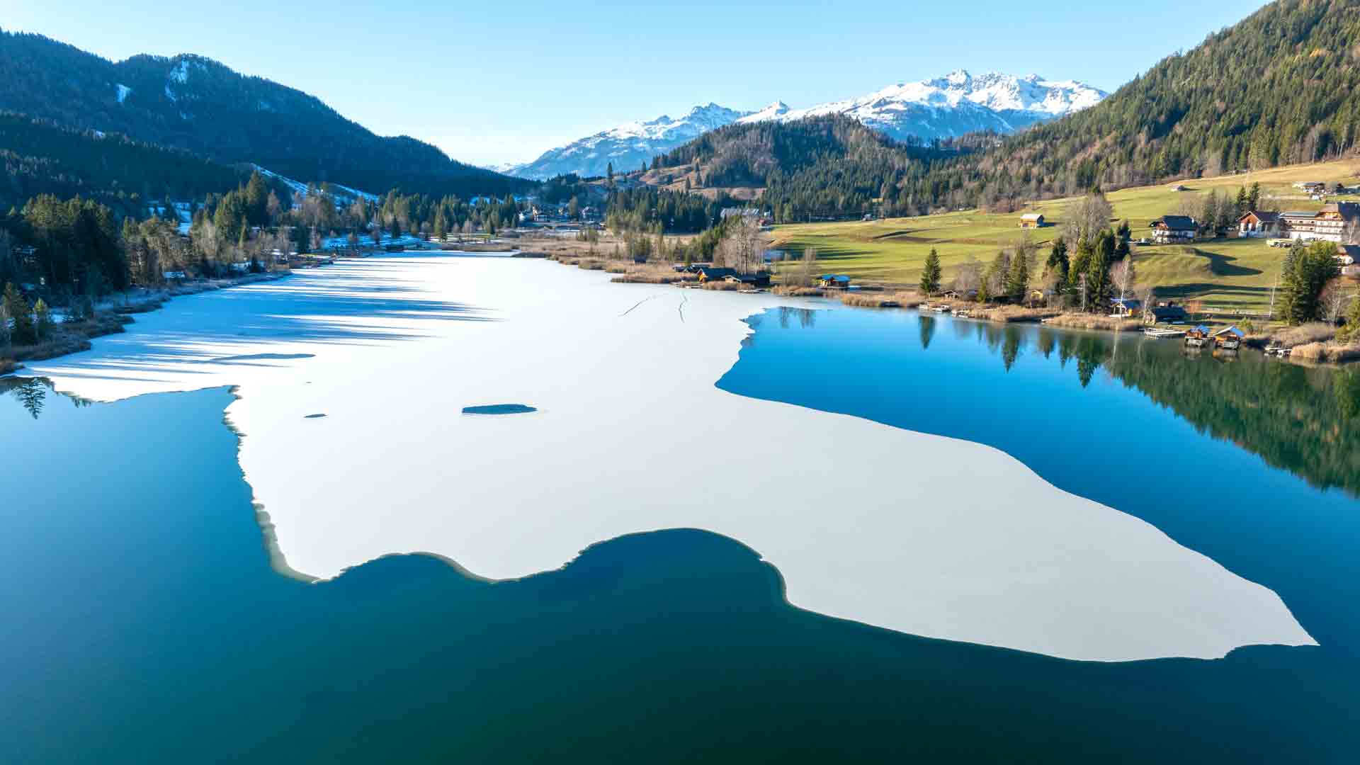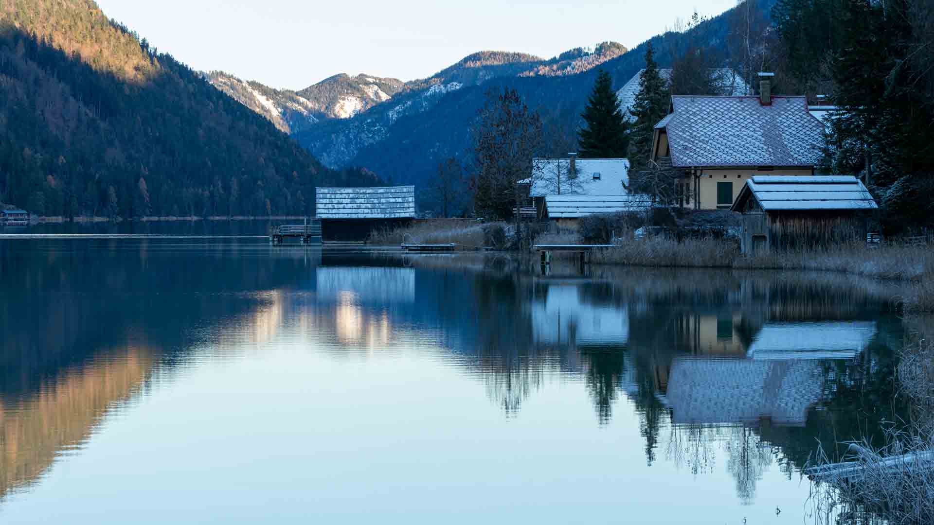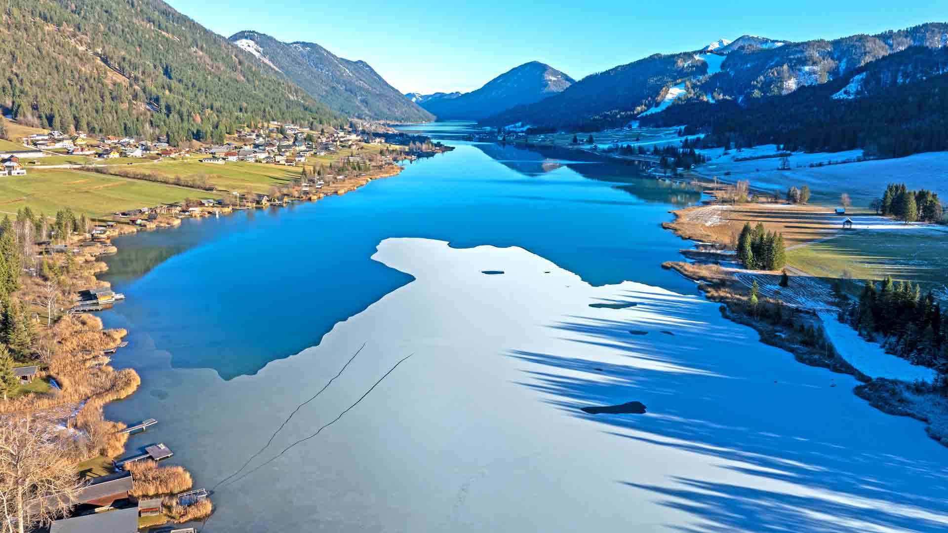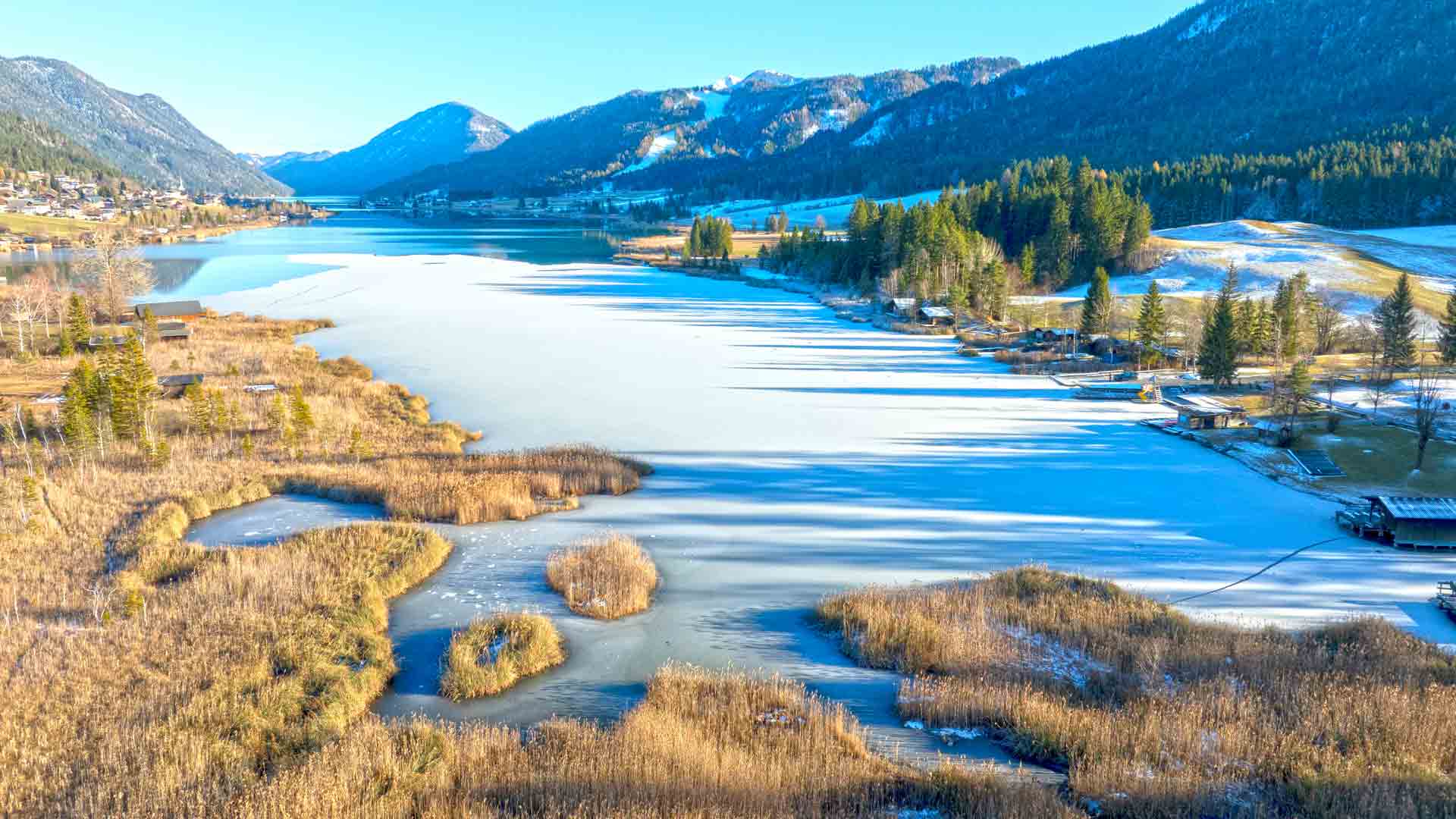 Am Westufer des Sees, beim Campingplatz, hat die nächtliche Kälte inzwischen eine geschlossene Eisdecke entstehen lassen.