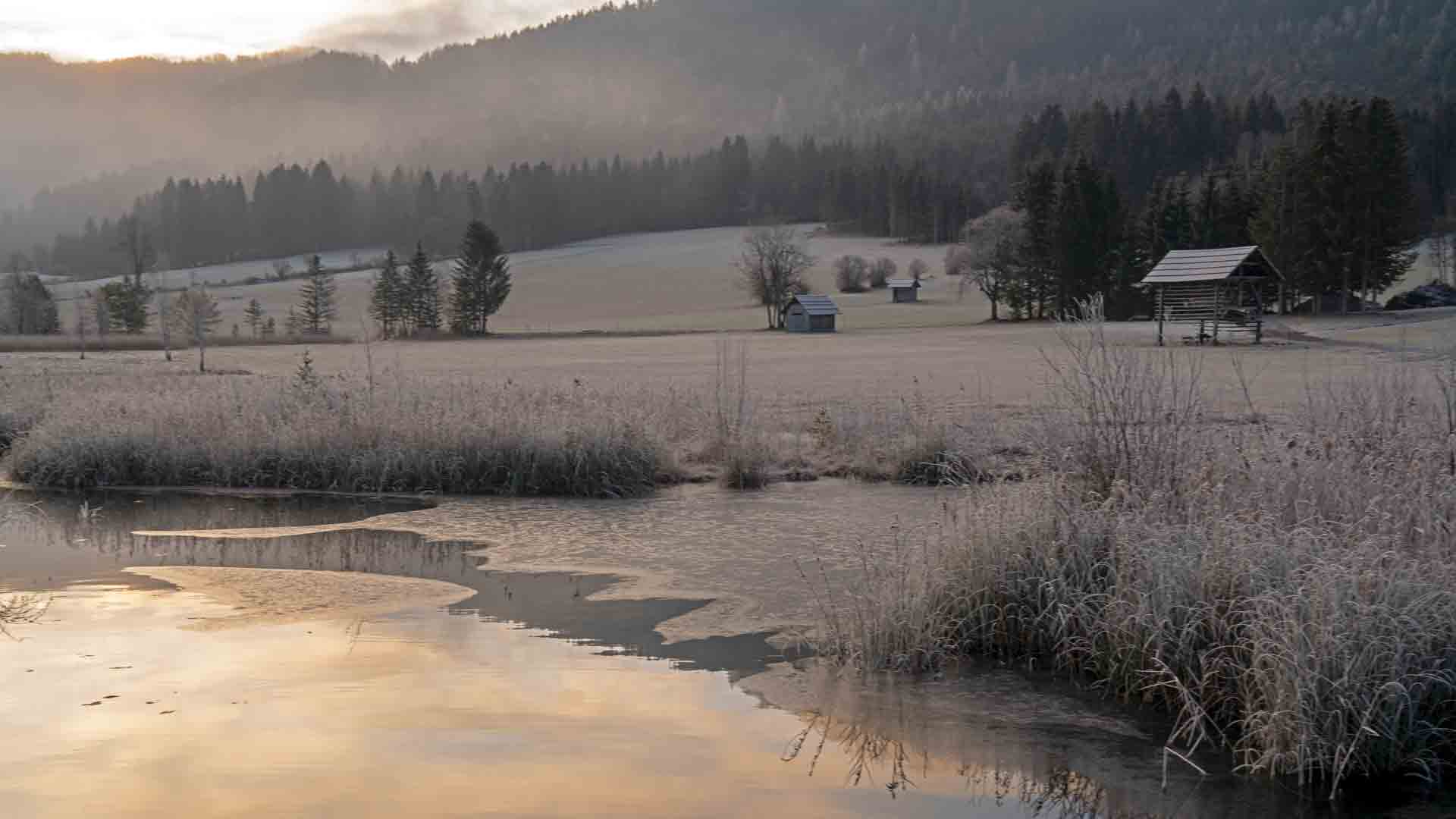Jetzt, nachdem der Winter bereits vor „Kathrein“ (25.Nov.) begonnen hatte, hat er sich in den vergangenen Tagen, nach dem offiziellen Winterbeginn, wieder rar gemacht. Bei Tagestemperaturen knapp über dem Gefrierpunkt und Wassertemperaturen von fast 8°C wächst das Eis kaum noch und auch der Schnee ist auf dem Rückzug.