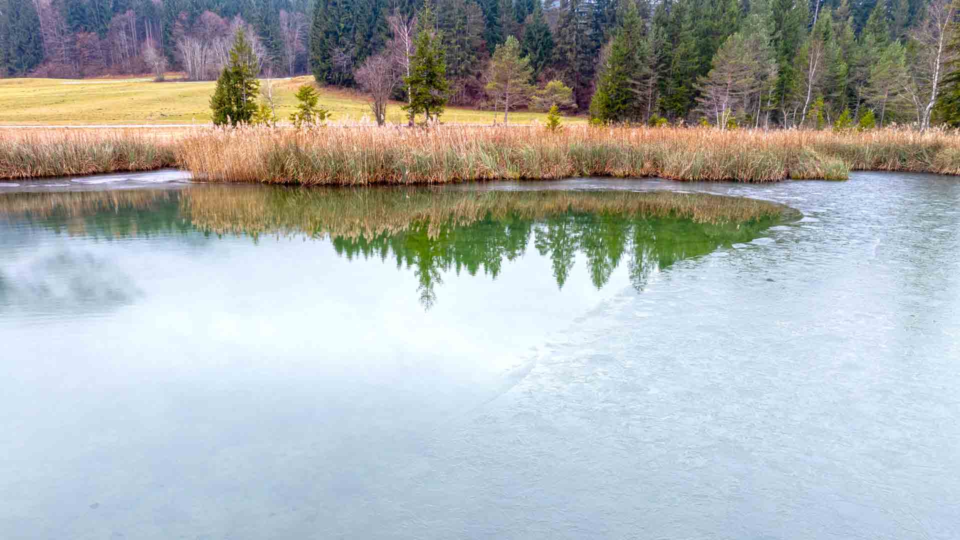 Auch bei diesem Wetter des Übergangs vom Herbst zum Winter kann man auf Spaziergängen stimmungsvolle Eindrücke sammeln wenn sich das Naggler Ufer in der stillen Oberfläche des Sees spiegelt.