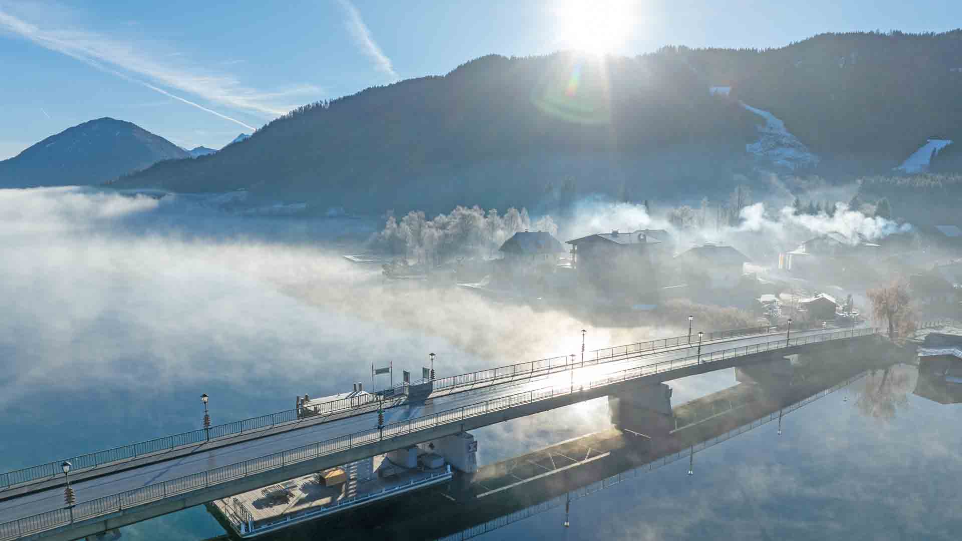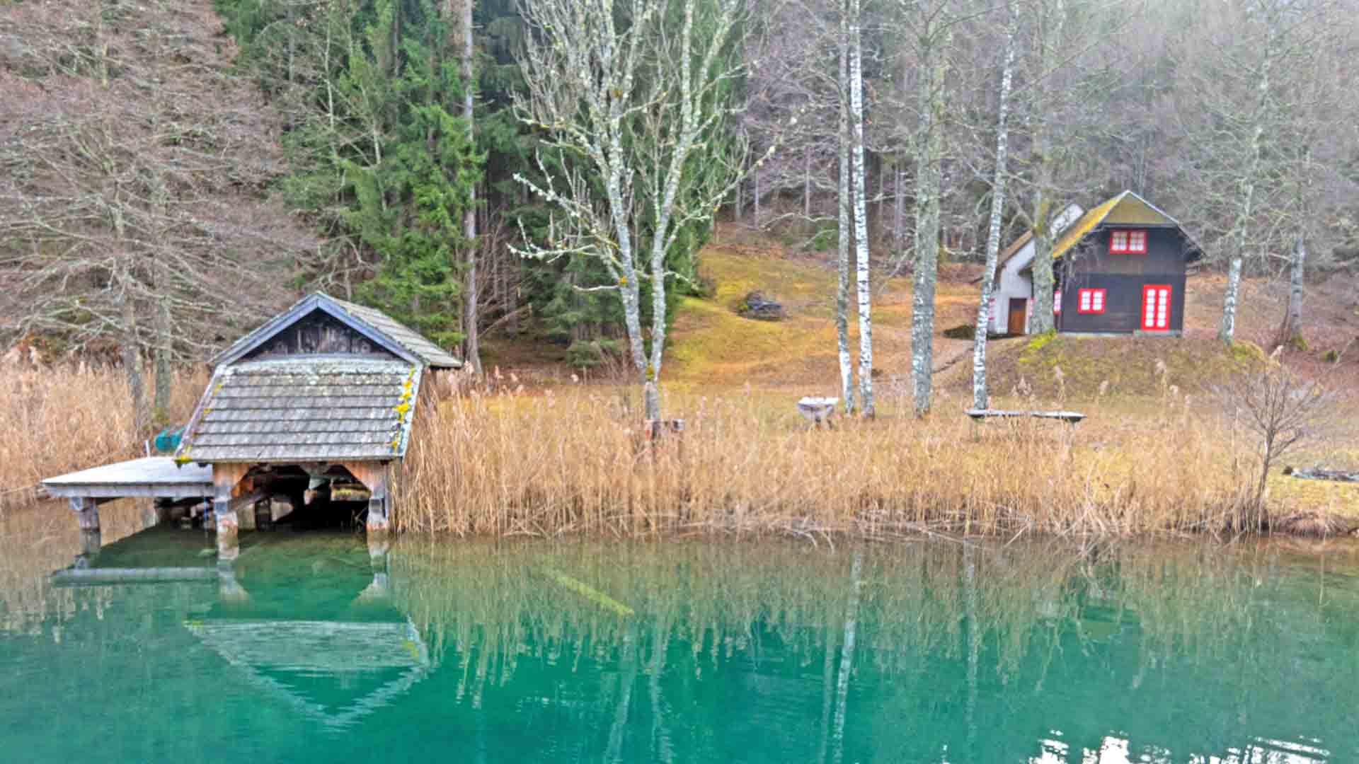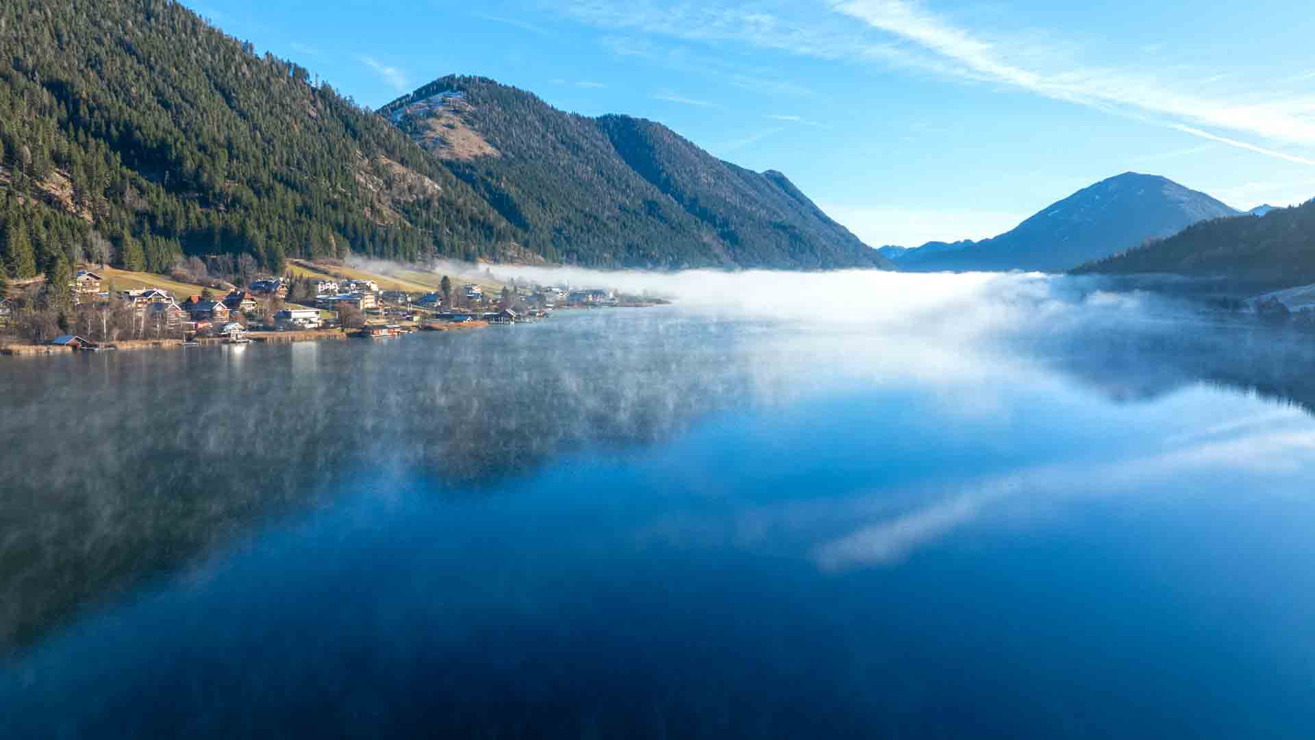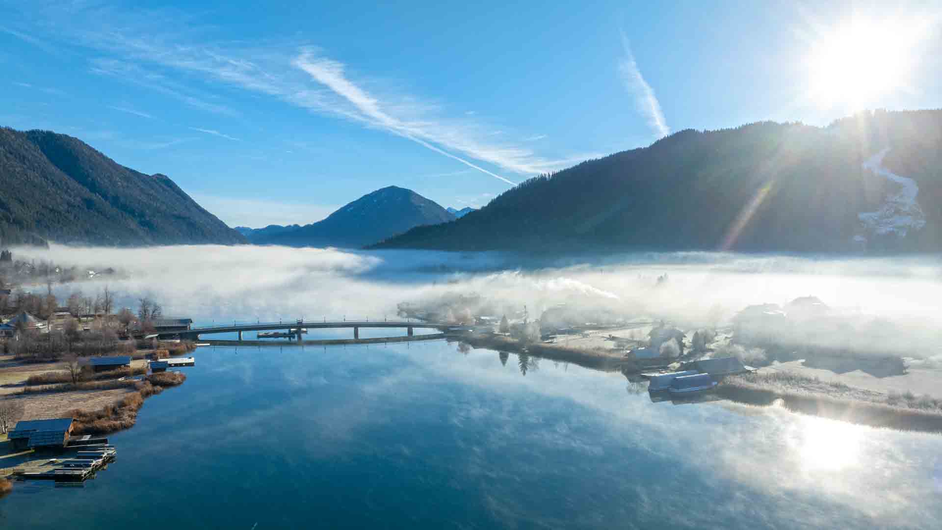 Wenn sich am Morgen der Nebel über dem See gelichtet hat sorgt die Sonne auf der Sonnseite des Tales für eine rasche Erwärmung.
