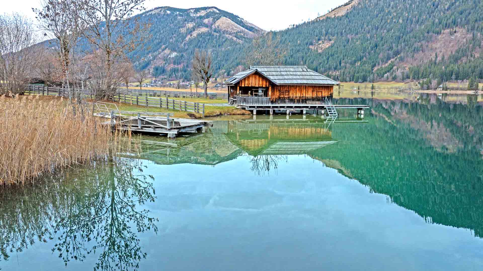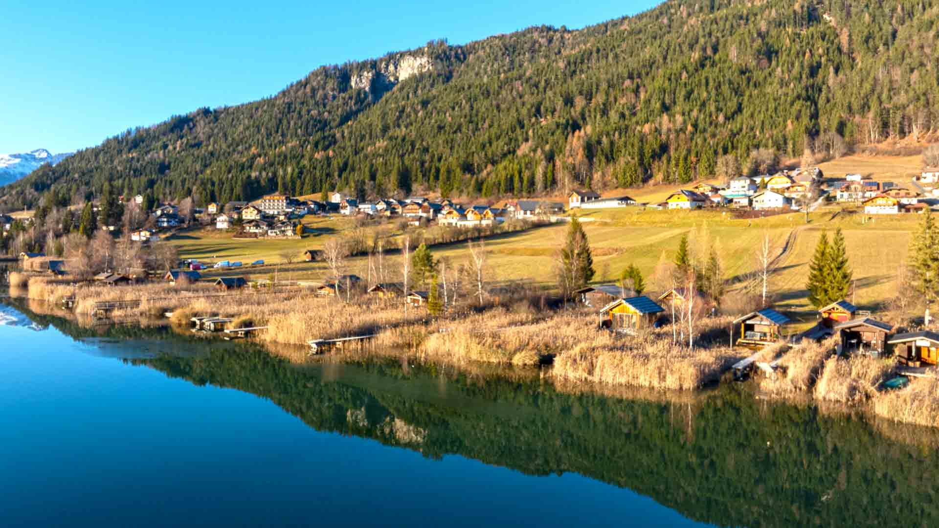 Auf der Schattseite in Naggl ist es aber merklich kühler und so ist es nicht verwunderlich das die Badestrände und Ferienhäuser still und verlassen sind.