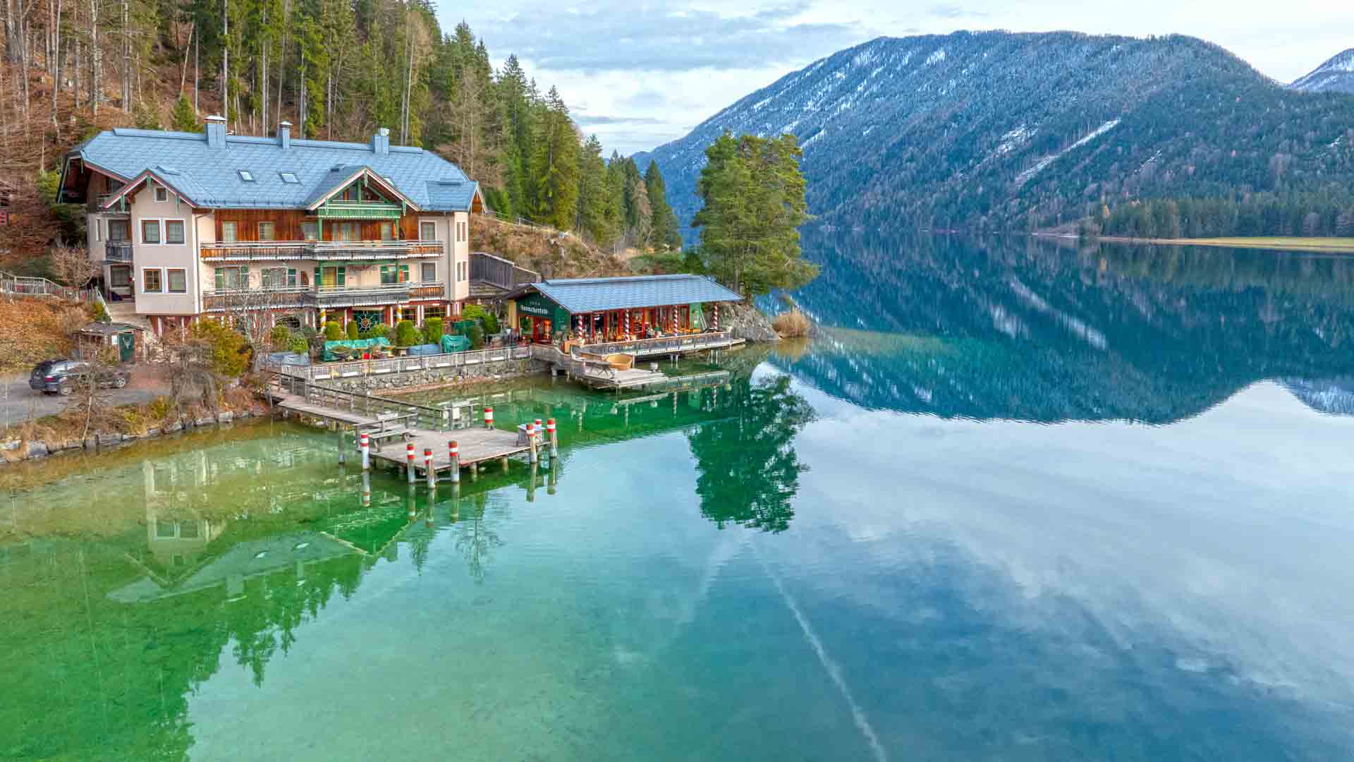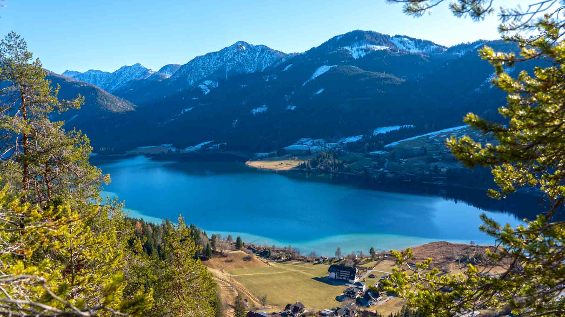 Bei unseren Touren hinauf zur „Weissen Wand“ und zur „Alm hinterm Brunn“ zeigte sich beim Blick über den See das auf der Schattseite das dort bereits ein wenig Winter herrscht.