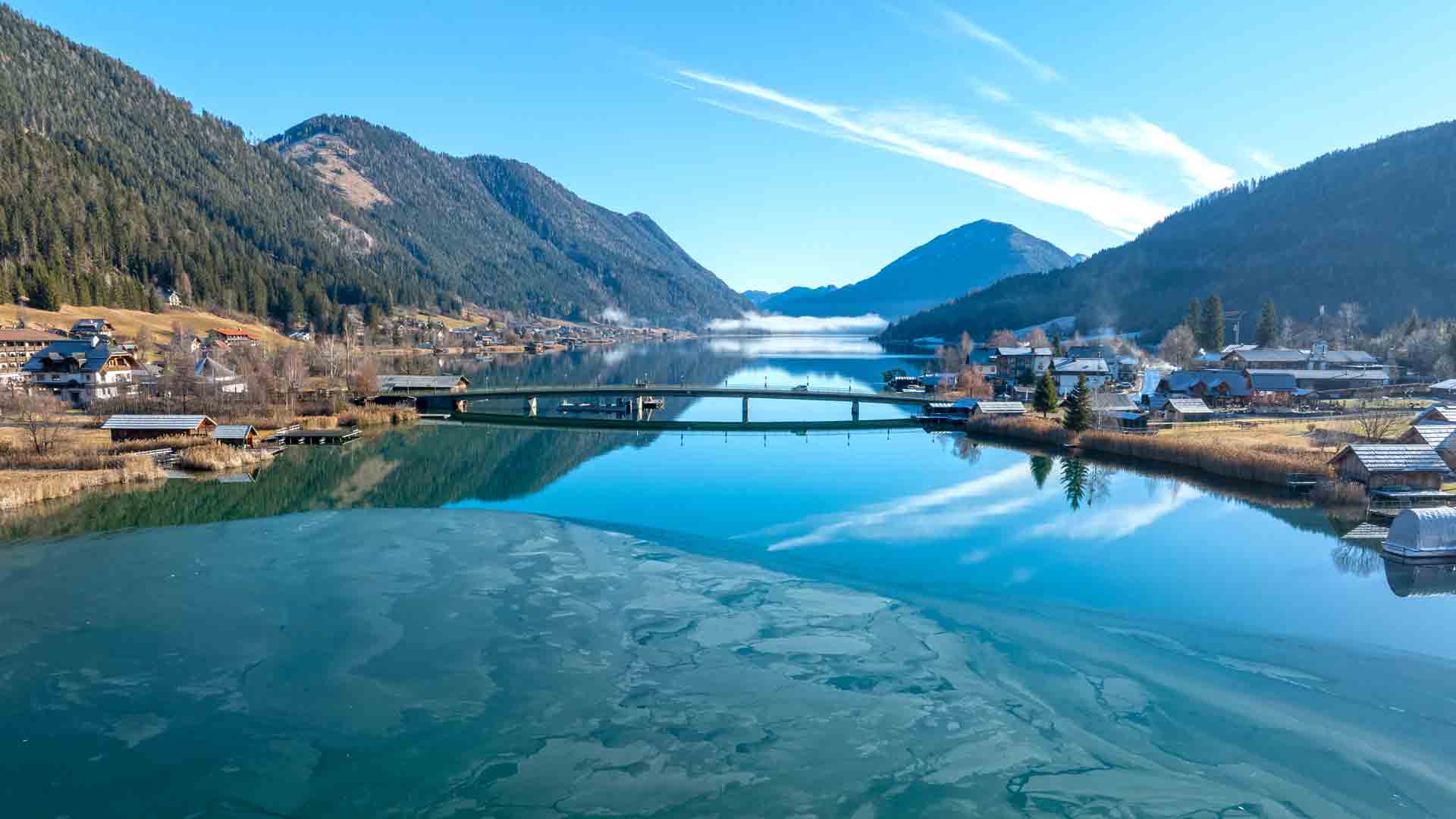 Beim Blick über den See zeigt sich auch das die Eisdecke in der Nacht wieder gewachsen ist und jetzt fast schon die Seebrücke in Techendorf erreicht hat.