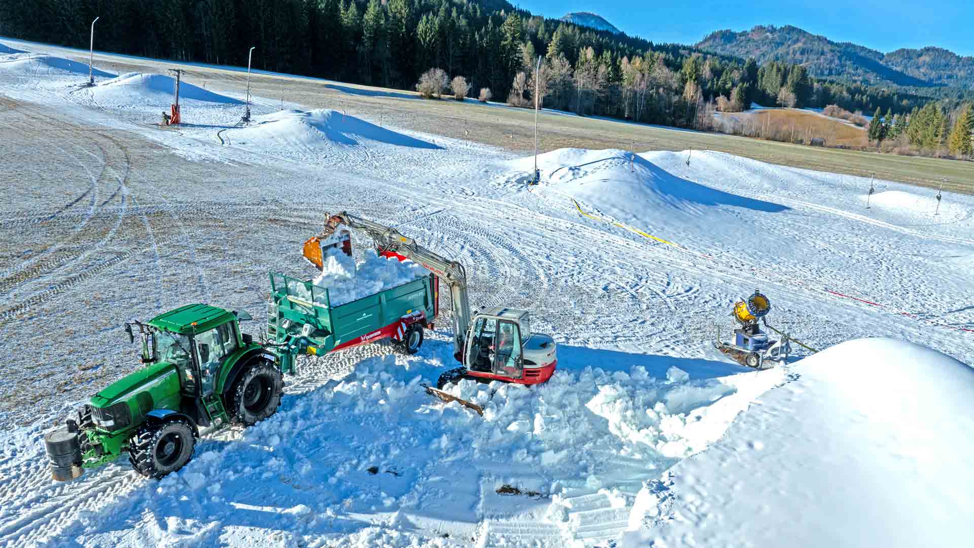 Die Arbeiten für die Einrichtung einer Langlaufloipe heben bereits heute begonnen, aus den Schneedepots wird der Schnee mit Traktoren auf der Strecke ausgebracht und dann mit dem Loipengerät präpariert. Das Ende der Durststrecke für die Langläufer ist damit ebenfalls absehbar. Wir wünschen schon einmal viel Spaß!