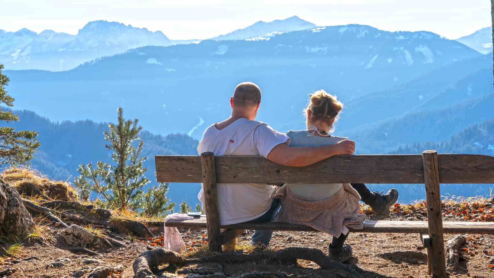 Wen es in die Berge zieht der kann auch, so wie wir, eine kleine Wanderung hinauf zur „Weissen Wand“ unternehmen und dort oben, im sommerlichen Outfit ein winterliches Sonnenbad mit Aussicht genießen. Die Wege und Steige sind gut begehbar!