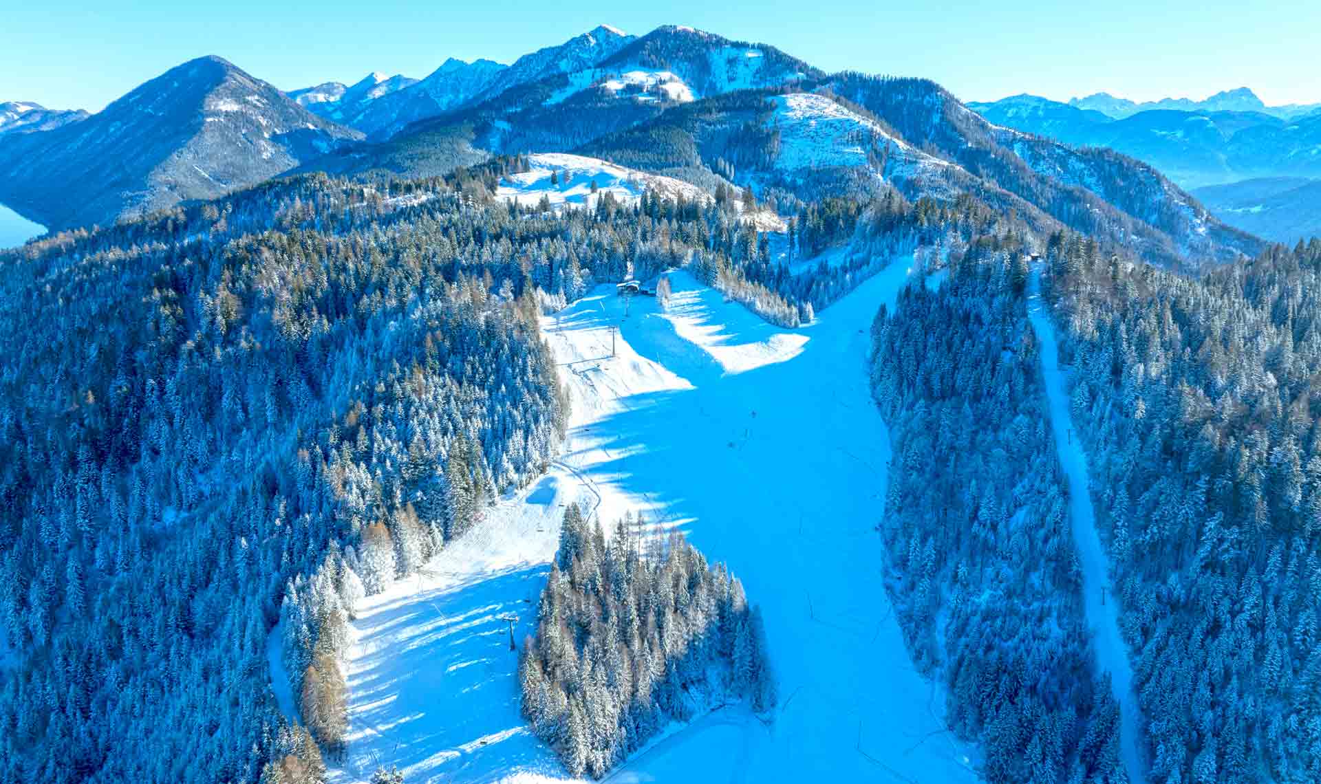 Nun hat es gerade noch für eine weiße Weihnacht gereicht! An den Weihnachtsfeiertagen hingen dichte Schneewolken über dem See, die Bergstation der Bergbahn war vollig in den Wolken verschwunden.