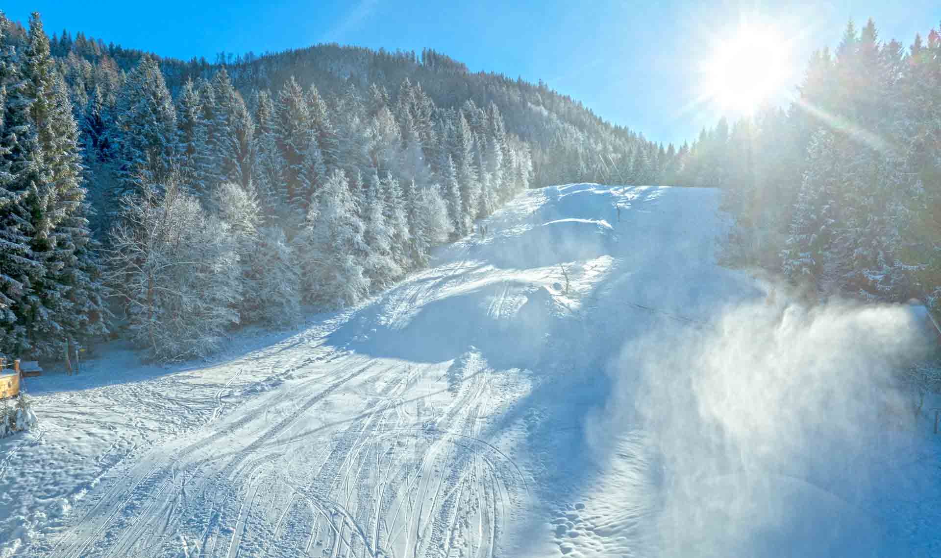 Die Minustemperaturen ermöglichen jetzt letzte Beschneiungsarbeiten auf der Schipiste um den Schifahrern gute Bedingungen zu bieten.