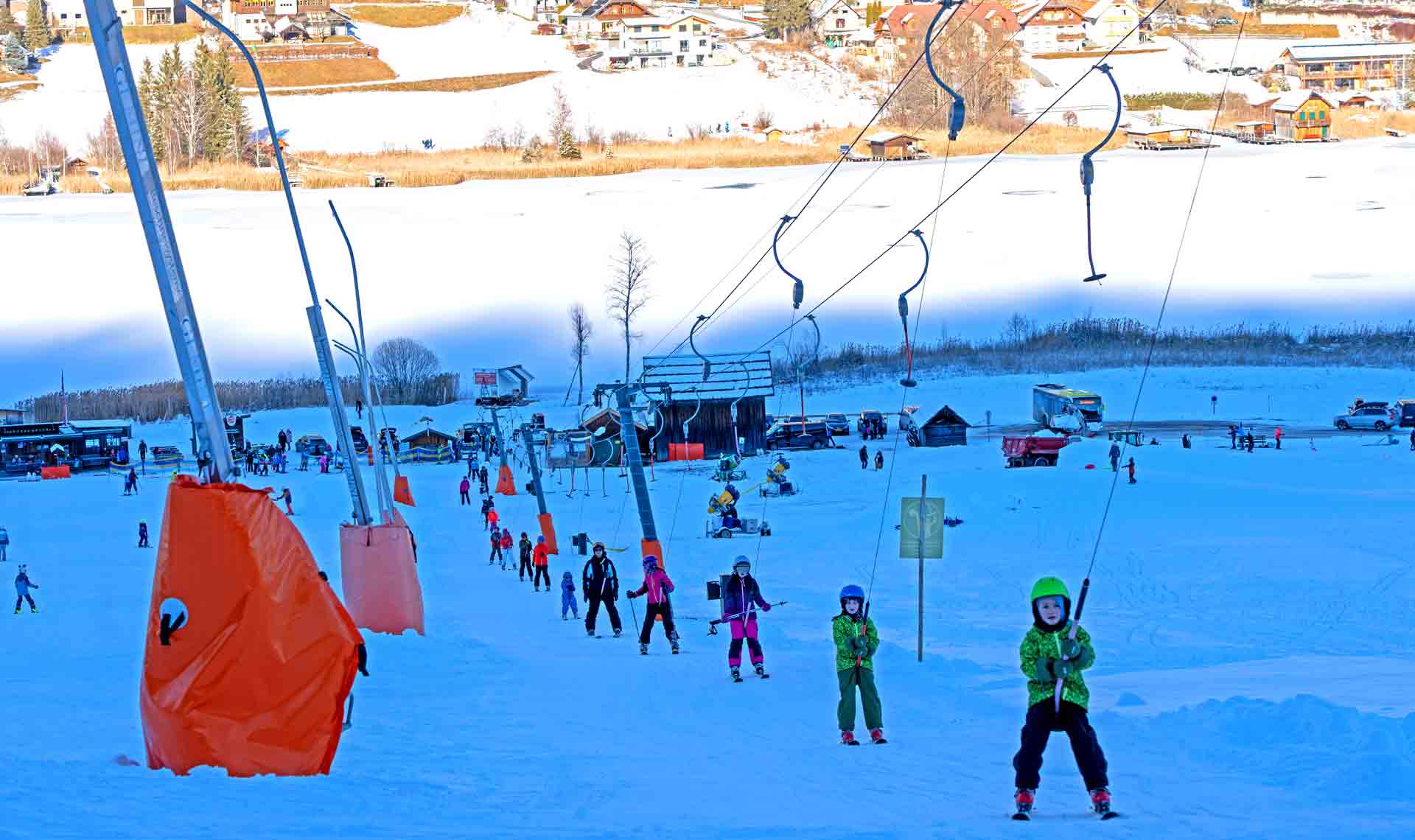 Hochbetrieb herrschte auch am Lift für die kleinen Anfänger auf der Seewiese.