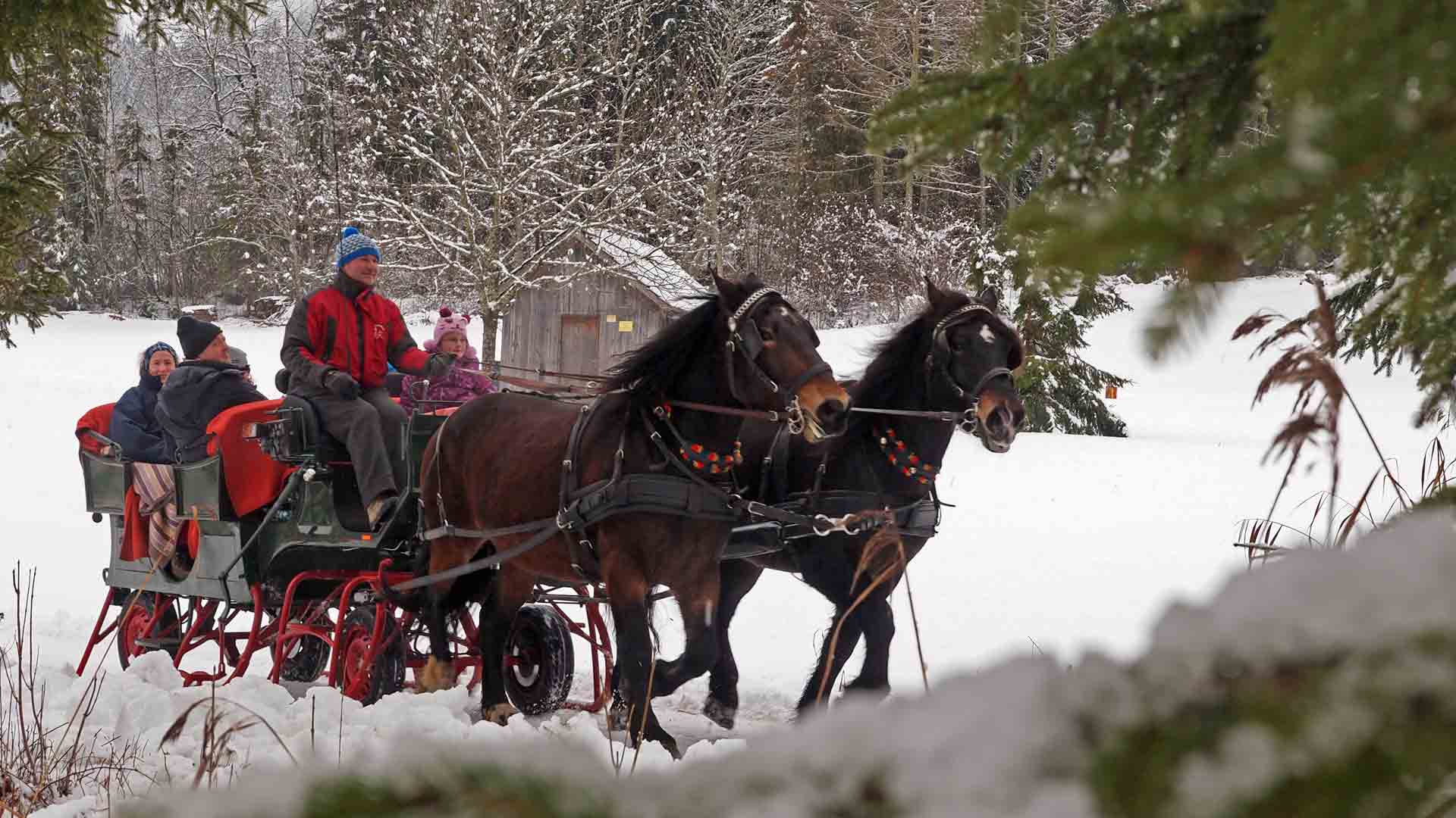 Vorbei an der Seewiese führte auch die Fahrt mit dem Pferdeschlitten. Eingehüllt in warme Decken geht die gemütliche Fahrt von der Seebrücke in Techendorf zum Westufer und retour. Demnächst führt die Fahrt dann wohl übers Eis denn die frostigen Temperaturen sorgen für kräftiges Wachstum des Eises, So tummelten sich an den Feiertagen am Westufer bereits zahlreiche Eisläufer. ACHTUNG: Bitte die Absperrungen beachten, sonst ergeht es euch wie dem Eismeister, er wurde leider bereits zum Bademeister.