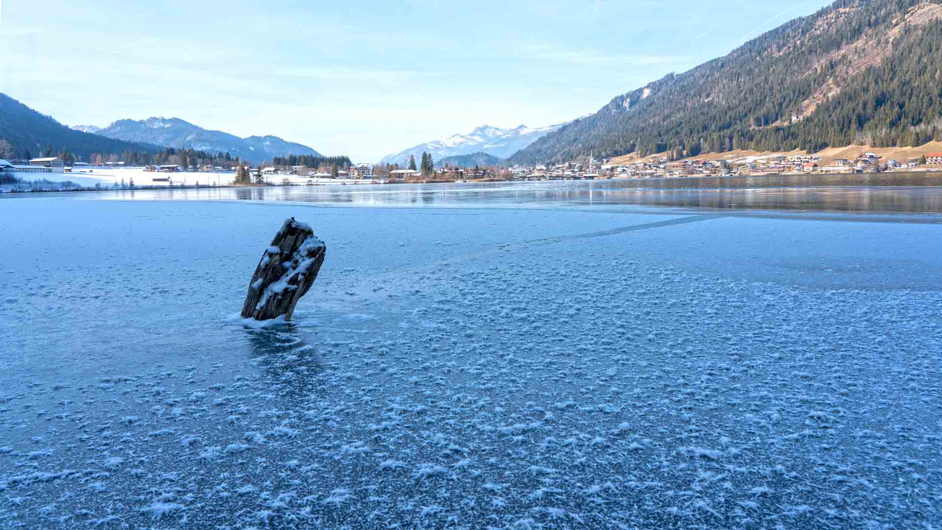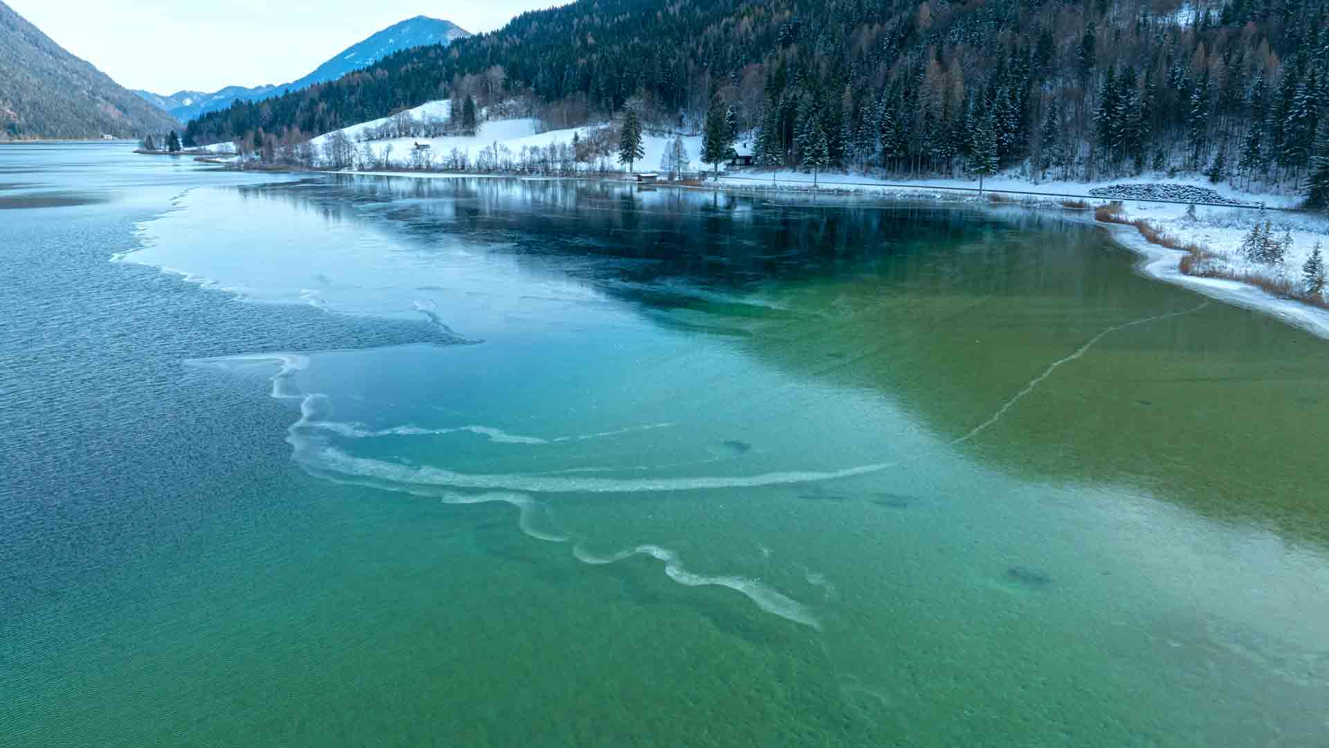 Bei unserem Spaziergang am Neujahrstag entlang des Seeufers in Naggl haben wir im Schilfgürtel „Eis am Stiel“ entdeckt. Es entsteht hier bei frostigen Temperaturen wenn Wind und Wellen auf die Schilfrohre treffen und dort gefrieren. Etwas bunte Farbe und schon haben wir „Weissensee-Natureis am Stiel“.