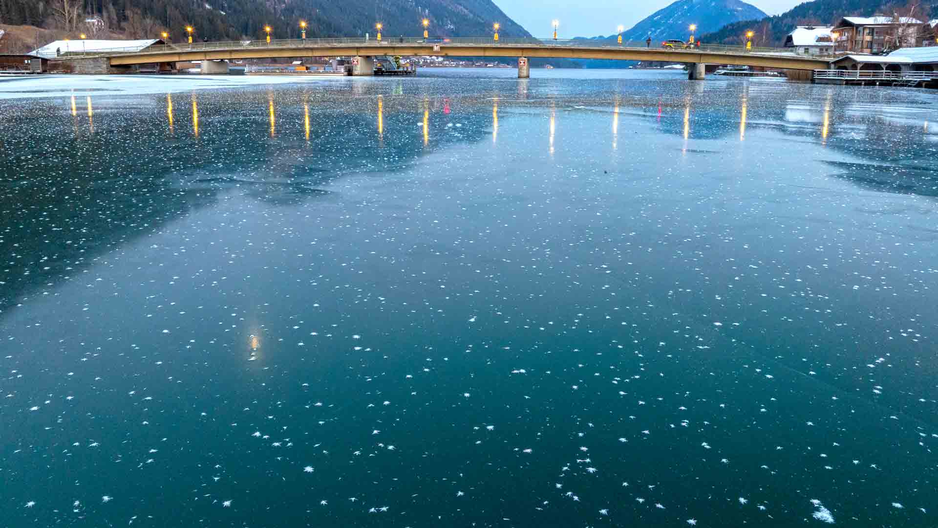 Das Eis wächst jetzt überall, auch auf der Schattseite des großen Meeres entlang der Strasse nach Naggl wächst jetzt eine erste dünne Eisdecke. !!! Achtung: Nicht betreten !!!