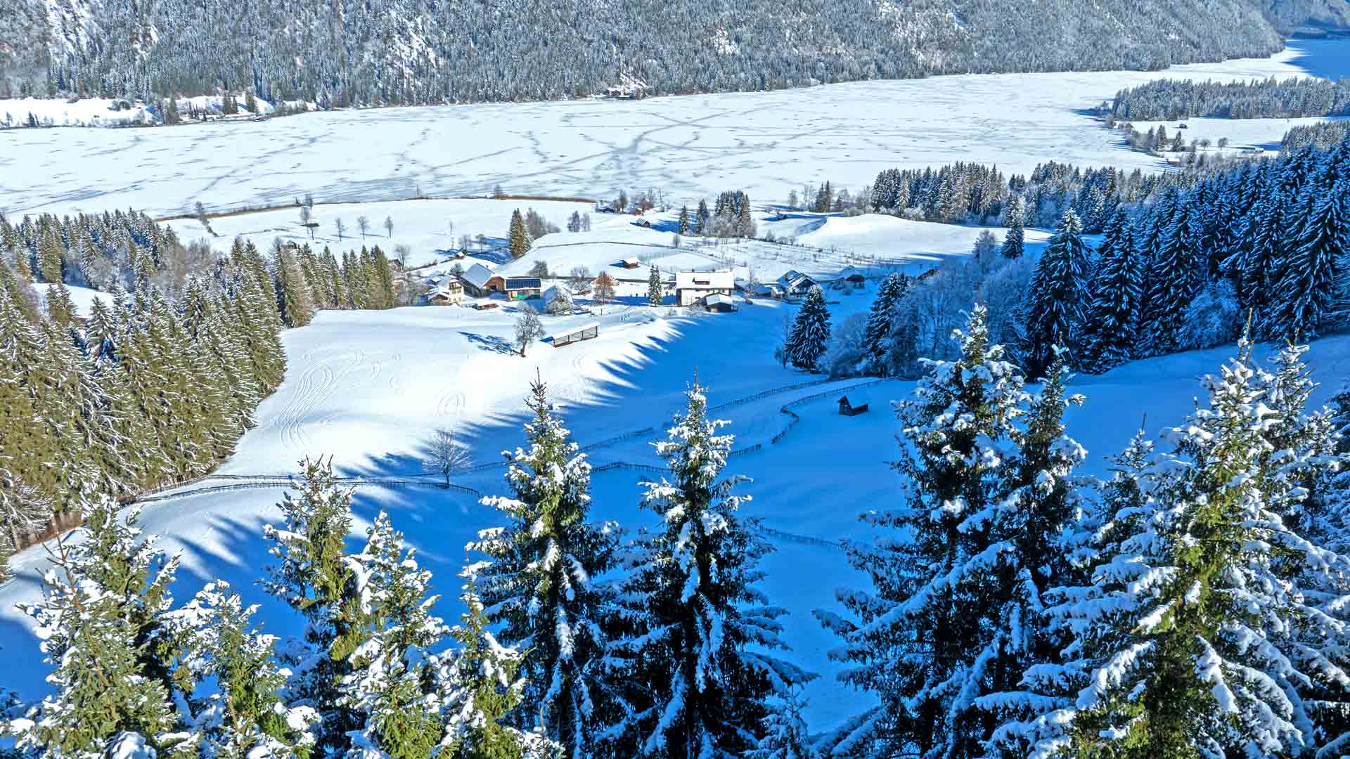 So waren wir heute unterwegs um die schönen Seiten des neuen Schnees zu genießen, dabei haben wir zunächst von Obernaggl aus einen Blick über den winterlich See und den verschneiten Raderhof geworfen. Beim Blick nach Osten war vom war vom glatten „schwarzen Eis“, dem Traum der Eisläufer, nichts mehr zu sehen, nur noch Schnee.