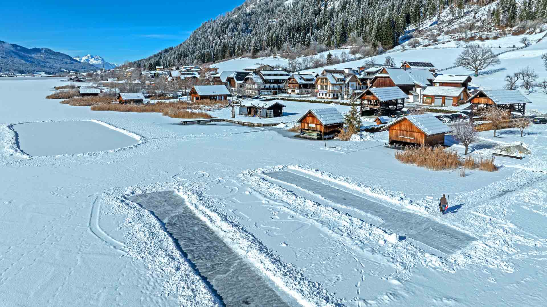 Mit den Wetterprognosen ist das ja immer so eine Sache, man hat ja subjektiv immer den Eindruck das die meist nicht stimmen. Darauf hatten wir wohl auch an diesem Wochenende gehofft. Wir hatten schon die schnellen Kufen aus dem Keller geholt um damit am Wochenende über das glatte Eis des „großen Meeres“ zum „Dolomitenblick am Ostufer zu fahren. Leider aber stimmten an diesem Wochenende die Wetterprognosen und es kam Schnee. Also wanderten die Schlittschuhe wieder in den Keller denn es gab so viel Schnee das wir für diesen Winter die Hoffnung aufgegeben haben.