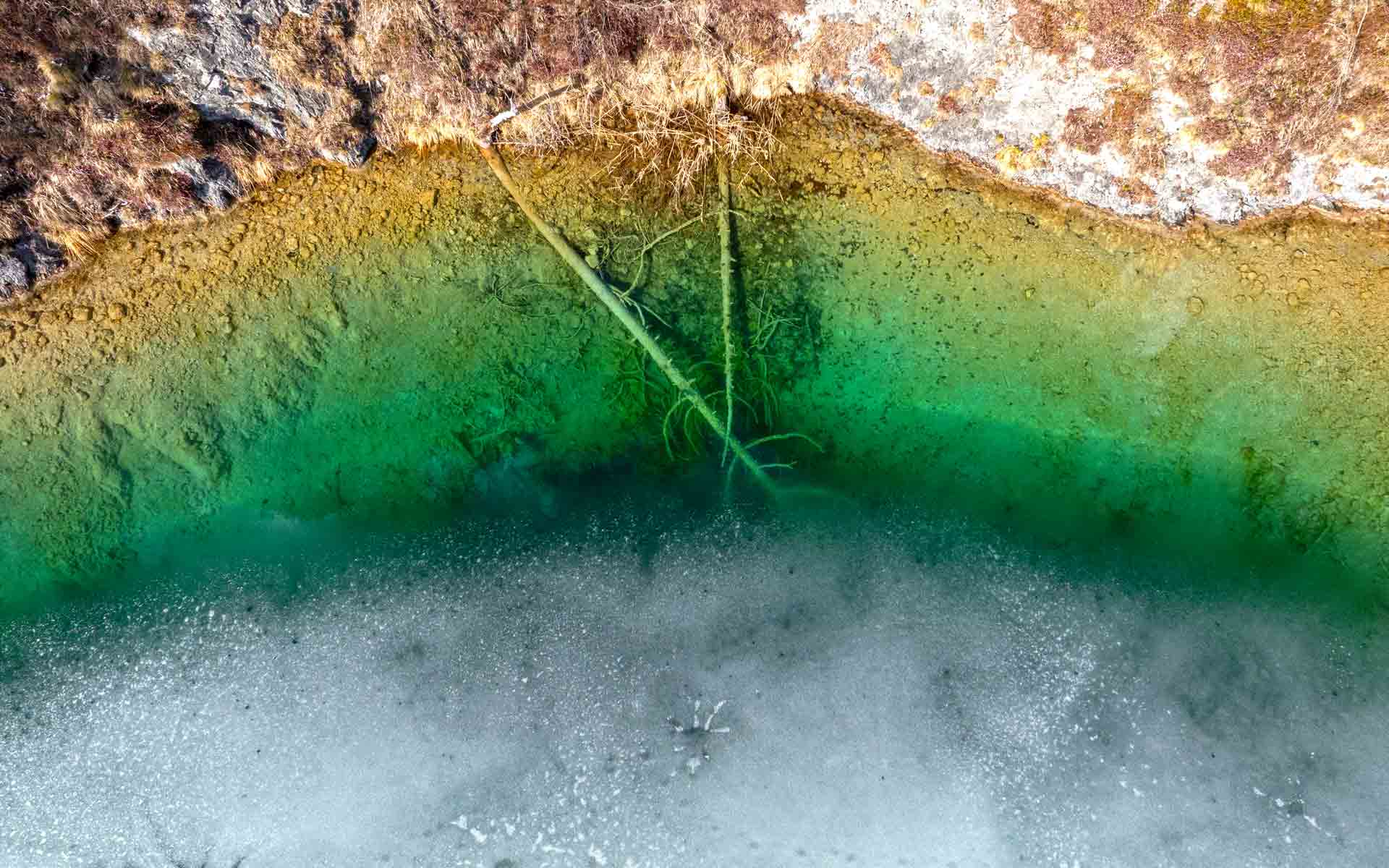 In diesen Tagen werden, durch das zurück weichende Eis, die nur wenige Tage andauernden Frühjahrs-Farbfestspiele am Nordufer des Sees eröffnet.