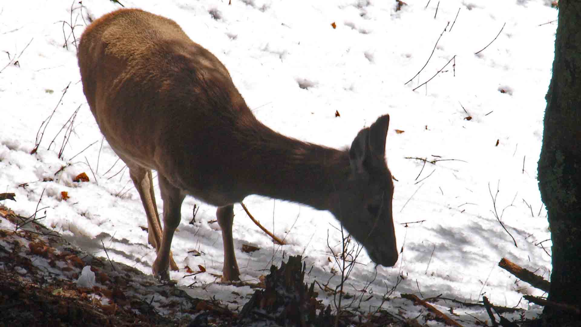 Auch im Bergwald ist auf der Sonnseite wieder vermehrt Leben zu beobachten, dort konnten wir eine Hirschkuh und einige Gämsen beobachten. Die Tiere werden sich aber jetzt, da der Schnee verschwindet, wieder in höhere Regionen der Berge zurückziehen.