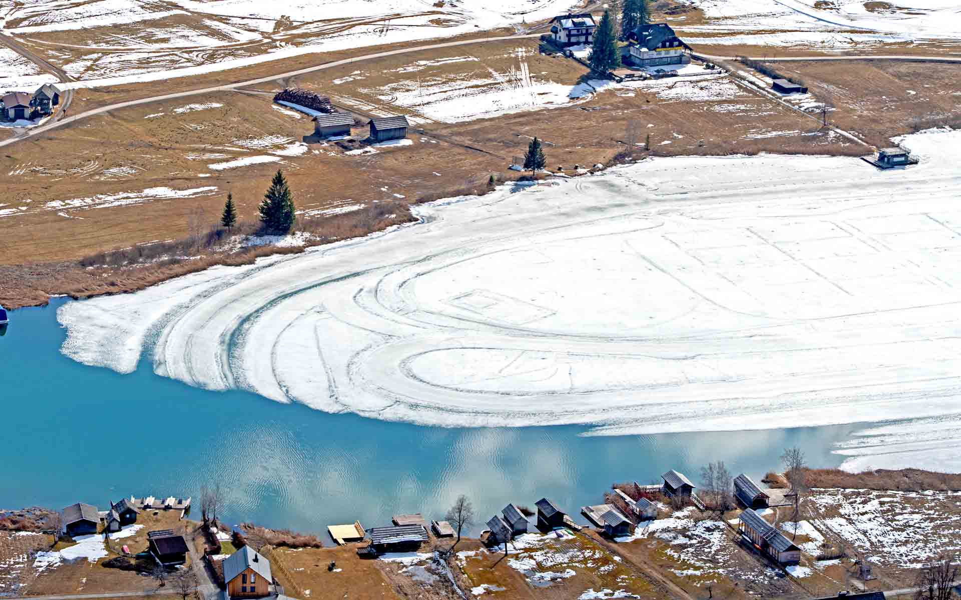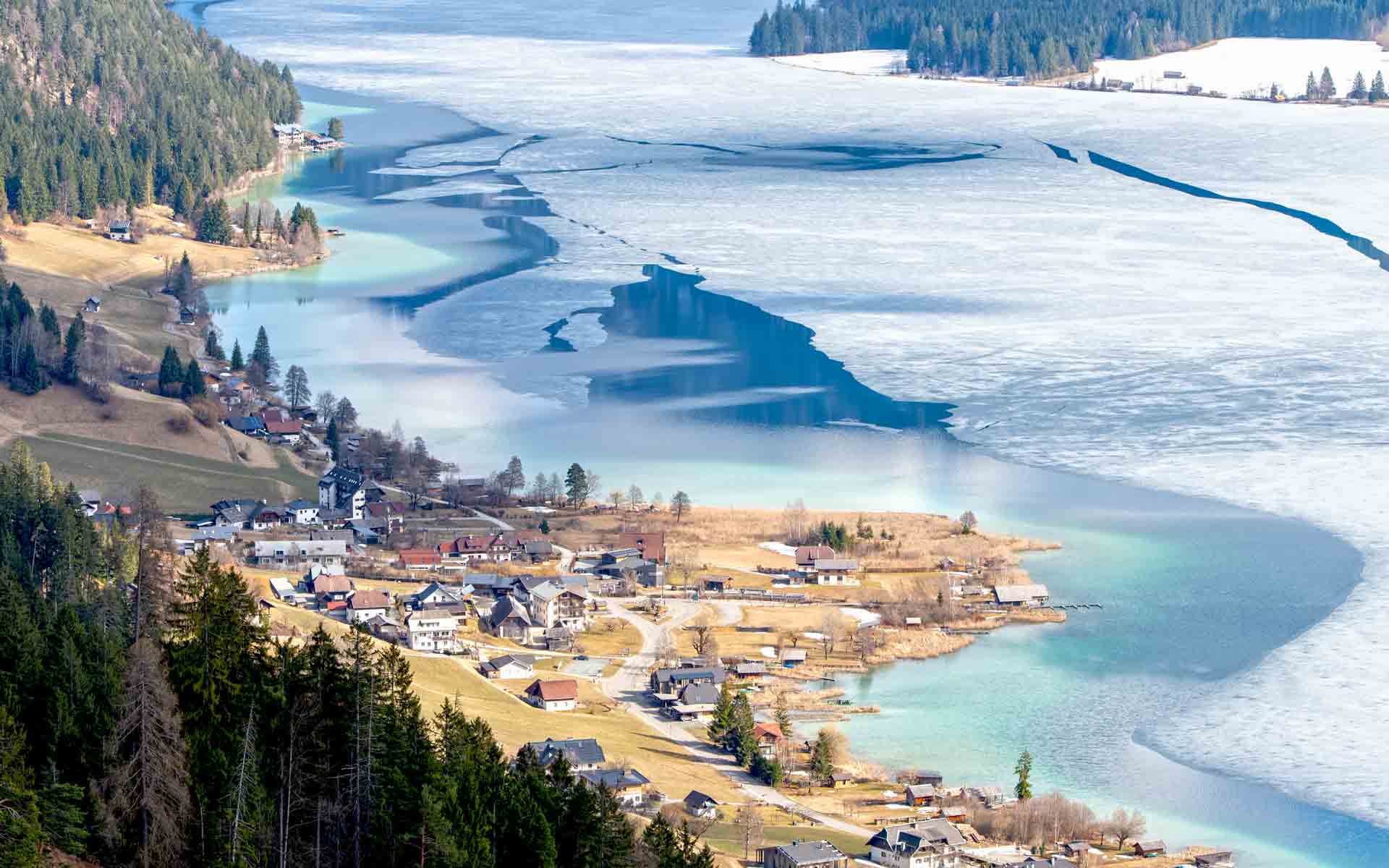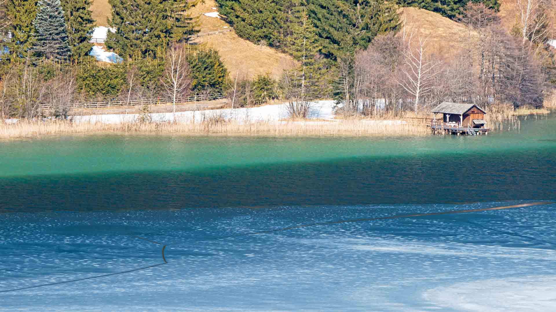 Wer von oben auf die Seebrücke in Techendorf hinunter blickt stellt fest das die Bahnen auf denen sich bis vor kurzem noch zahlreiche Eisläufer tummelten jetzt direkt im kalten Wasser enden.