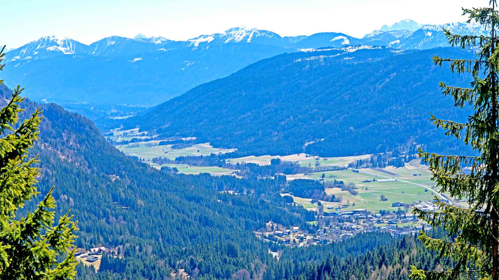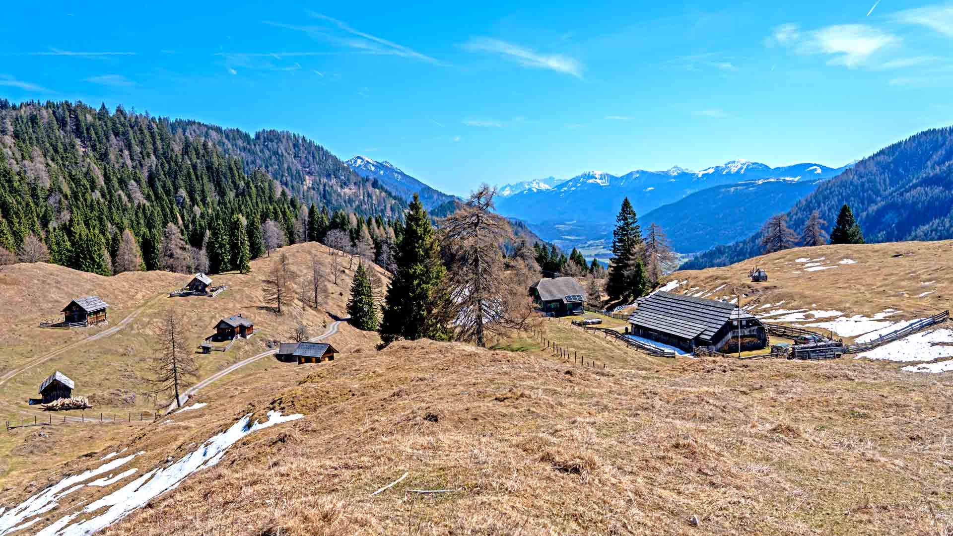 Auf unserem Weg bot sich uns ein toller Blick über das ganze Gitschtal bis hin nach Hermagor. Der Weg zur Alm war fast völlig schneefrei.