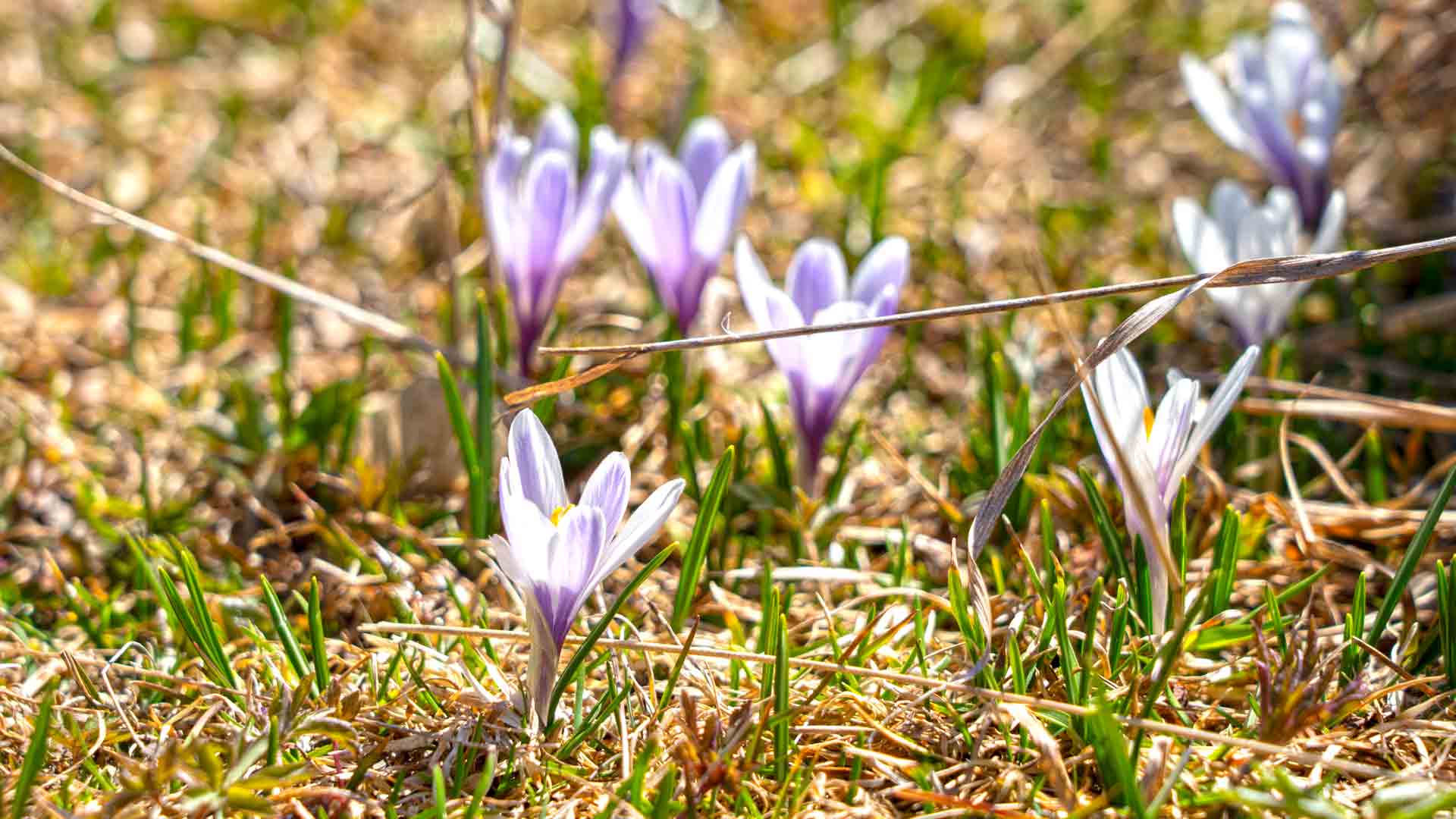 Aber an den sonnigen steilen Wiesenflächen, dort wo es keinen Schnee mehr gibt, sind am letzten Tag des Winters die ersten Frühlingsboten zu entdecken, die ersten bunten Krokusse sprießen bereits aus dem Boden.