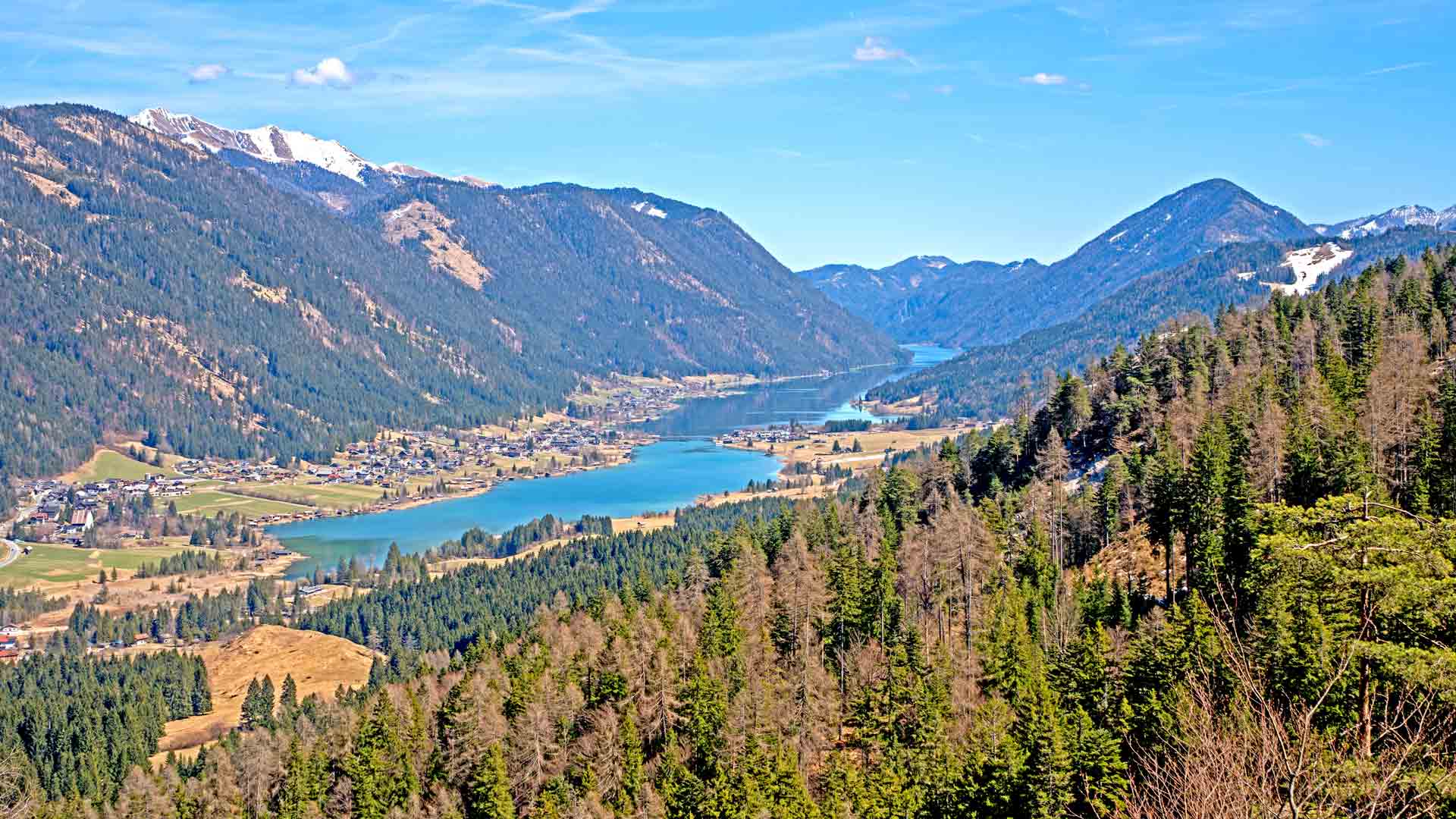 Beim Abstieg hinunter zum Kreuzwirt bot sich uns noch einmal ein Weissensee-Panorama vom Westufer bis fast zum Ostufer.