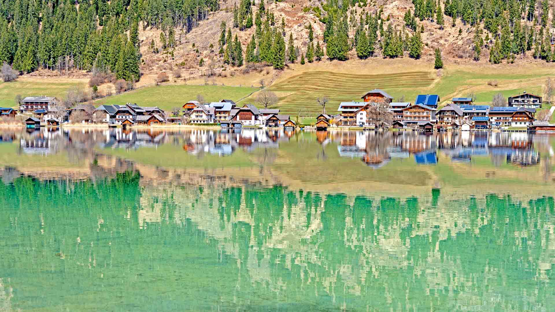 All das sieht man auf der Sonnseite des Sees, auf der Schattseite herrscht dagegen noch tiefer Winter, dort trainieren in dieser Woche noch zahlreiche Skirennläufer.